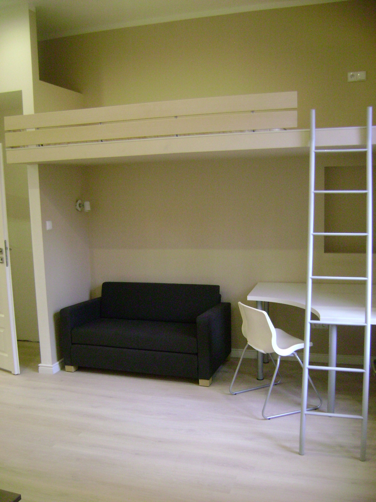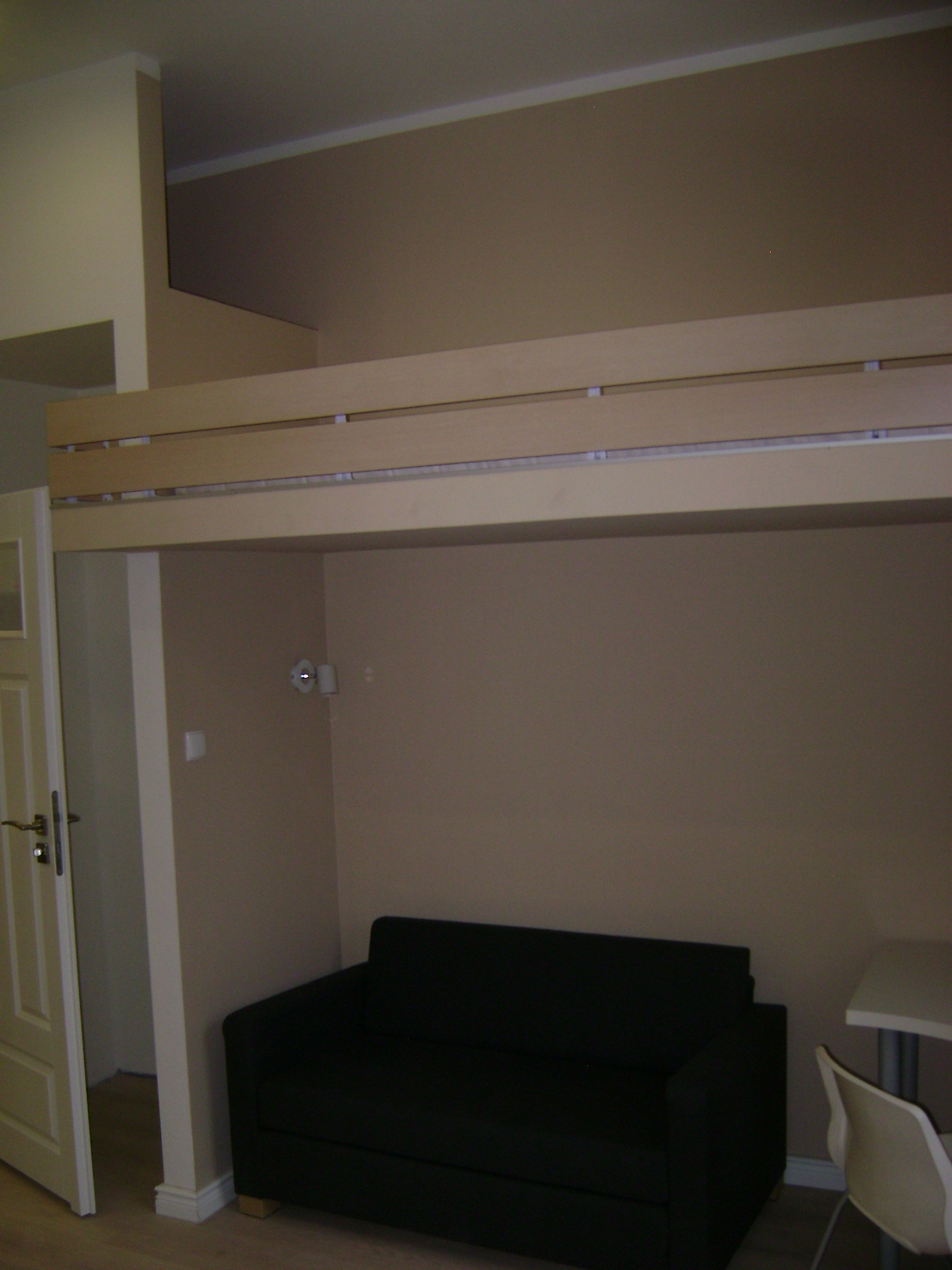 Do spania sa przewidewane rozkładana sofa, lub materac (90x200cm) na antresoli.